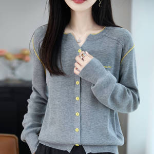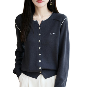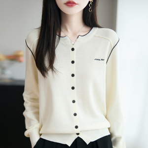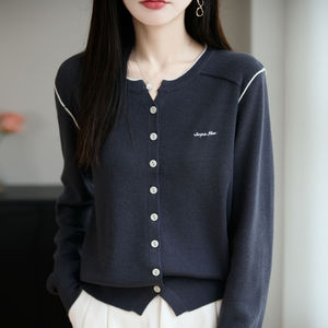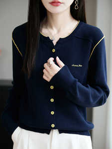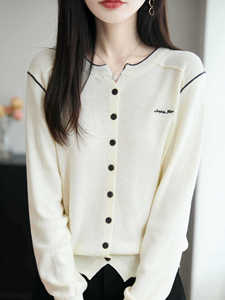 法式洋气撞色精纺miu系开衫女2025新款长袖保暖打底毛衣穿搭上衣