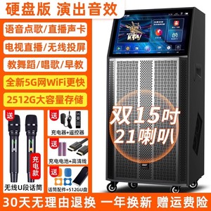 52吋网络版/超清触摸屏/正版KTV系统/声卡直播/四分频九喇叭/+2个充电无线话筒+512G歌曲U