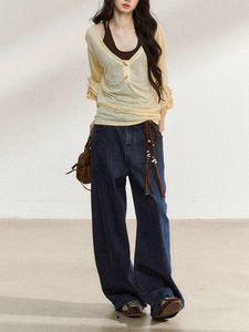 奶黄色罩衫+棕色吊带
