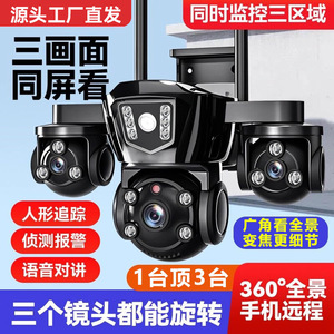 三画面4G免流量监控摄像头家用无线wifi室外手机远程超清全景