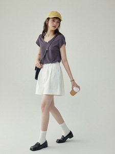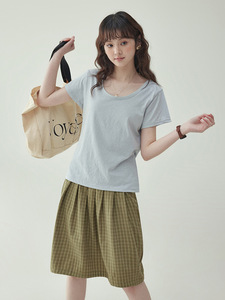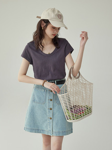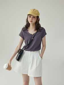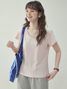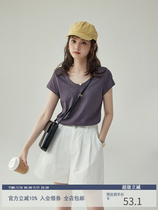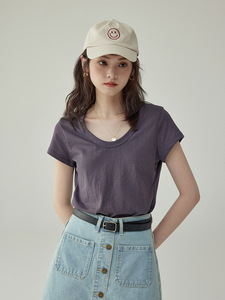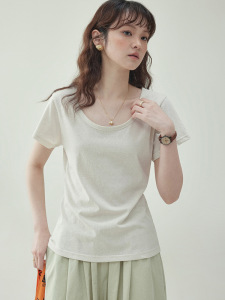 「北岛AMUU」正肩短袖经典款U领t恤夏季修身显瘦百搭设计感上衣女