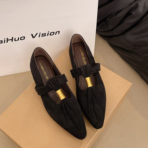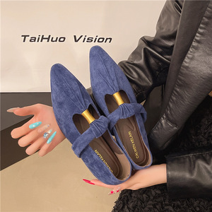 2025春秋新款法式浅口内增复古玛丽珍鞋女平底单鞋一字带芭蕾舞鞋