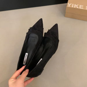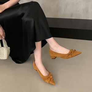 法式复古通勤粗跟单鞋女2025新款尖头配裙子花边晚晚奶奶鞋工作鞋