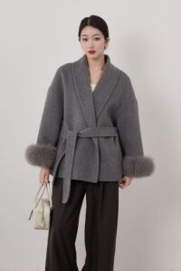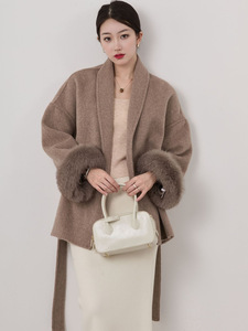 2025秋冬新款狐狸毛袖气质百搭高级感羊毛大衣女双面羊绒毛呢外套