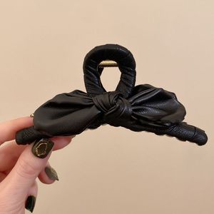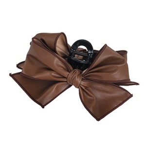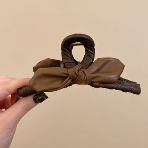 法式复古皮质蝴蝶结抓夹大号时髦后脑勺盘发鲨鱼夹发量多抓发夹女