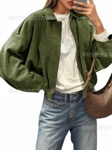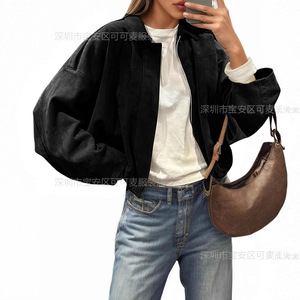 跨境欧美外贸2025秋季新款女装外套时尚飞行员蝙蝠袖拉链夹克上衣