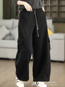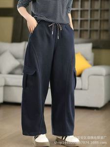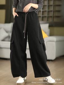 琪镌绘制韩国东大门高腰工装休闲裤女秋季束脚两穿宽松直筒阔腿裤