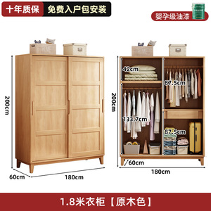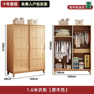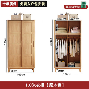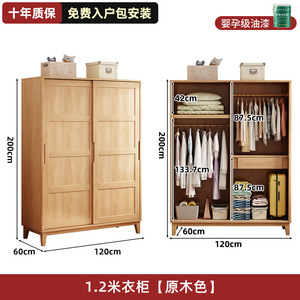 北欧实木衣柜简约推拉门衣柜家用卧室储物柜经济型两门衣柜收纳柜