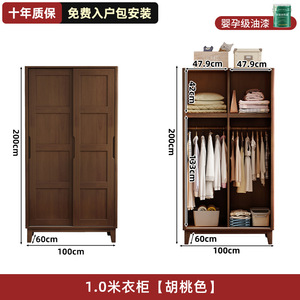 推拉门衣柜【胡桃色 100*60*200】 包送装