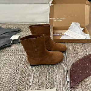 软皮版~2025韩系氛围感拉满~真软皮翻折两穿堆堆靴软底勃肯短靴女