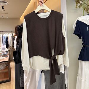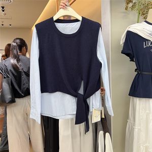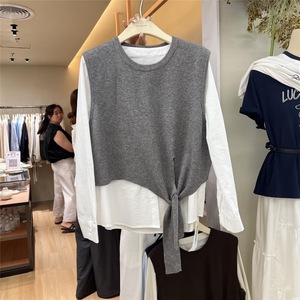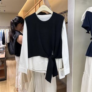 秋装新款新品秋季2025韩系气质简约宽松衬衫针织马甲两件套女上衣