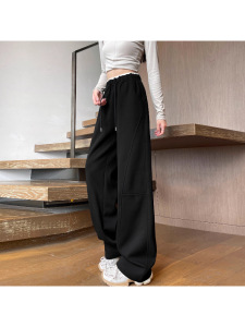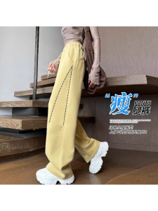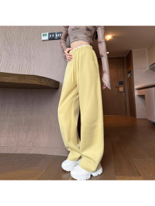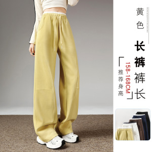 弯刀阔腿裤女春秋2025新款高腰直筒休闲卫裤宽松黄色香蕉运动裤子