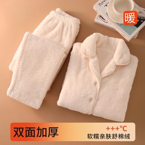 女士珊瑚绒睡衣女加绒加厚柔软女生家居服舒棉绒套装2025秋冬新款
