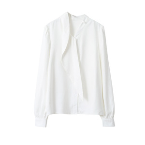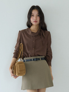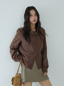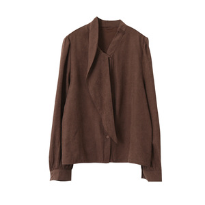 【率性出街】欧凡麂皮绒围巾领长袖咖啡衬衫女25年秋显瘦上衣3194