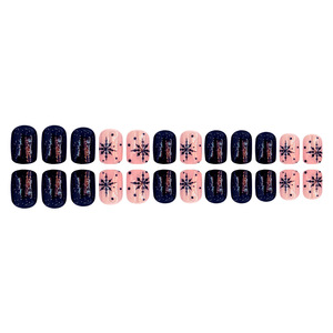 跨境圣诞节黑色雪花亮面穿戴甲跨境可拆卸假指甲24片短款小方