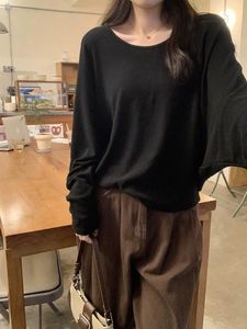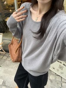 灰色韩系大U领宽松软糯针织衫女2025秋冬新款慵懒磨毛长袖T恤上衣
