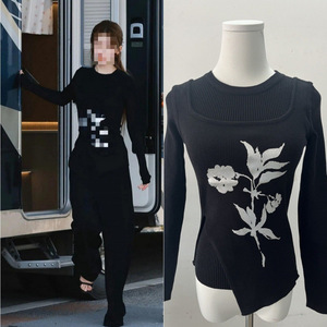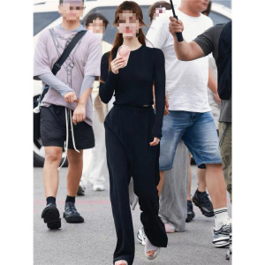 长期现货2025秋许我耀眼许妍赵露思同款黑色针织衫开叉吊带两件套