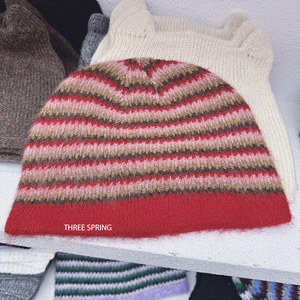 批发韩国2025年新款复古条纹拼色针织帽女休闲百搭小众设计包头帽