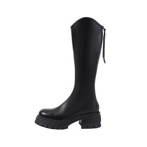 V口棕色内增高小个子松糕厚底长筒靴女秋冬高筒骑士靴不过膝长靴