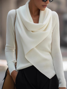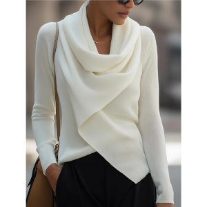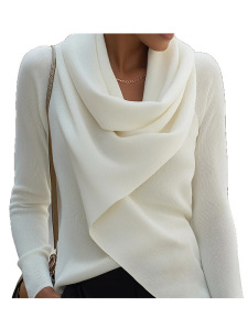 亚马逊欧美2025跨境秋冬时尚个性荡领不规则上衣纯色针织毛衣女装