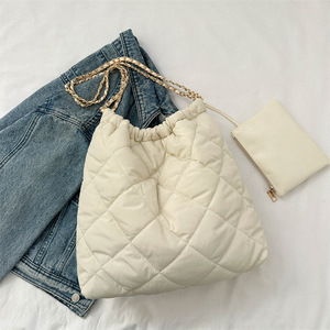 包包女2025秋冬款大容量通勤链条托特包时尚绣线菱格抽带水桶包