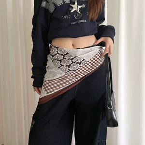 复古民族风红色印花屁帘女小众设计感印花腰巾配饰高级感小方巾潮