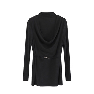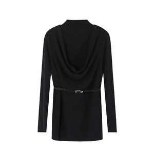 爱西里2025秋简约风荡领针织长袖上衣+气质高领无袖背心套装A1609
