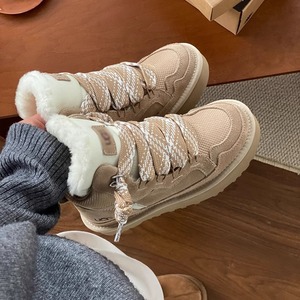 2025秋季皮毛一体雪地靴女系带一脚蹬防滑保暖运动百搭休闲棉鞋子