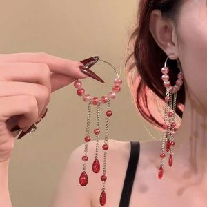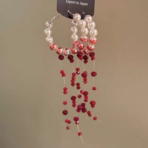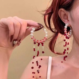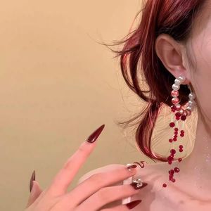 哥特风血红珍珠流苏耳环欧美跨境时尚高级感万圣节个性串珠配饰