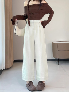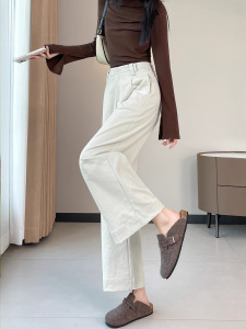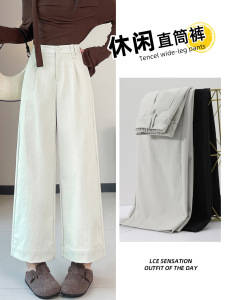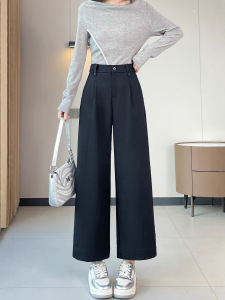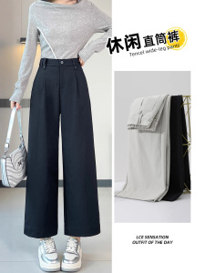 钛金棉休闲直筒裤女秋季新款高腰显瘦耐穿抗皱小个子阔腿裤A7250
