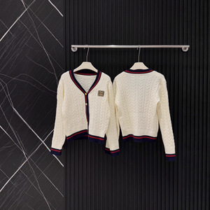 mm25秋冬新款学院风撞色麻花金线字母V领开衫