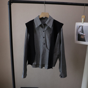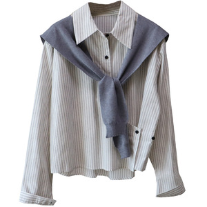[比正]2025秋季新款韩版时尚条纹宽松显瘦衬衫搭配针织披肩女5115