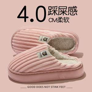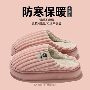 加绒棉拖鞋男居家室内用保暖毛拖鞋秋冬季耐磨软底跨境棉拖女批发