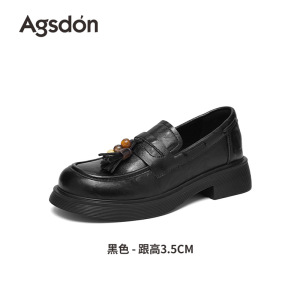 奥古狮登厚底乐福鞋女2025新款秋季黑色软底单鞋通勤英伦风小皮鞋