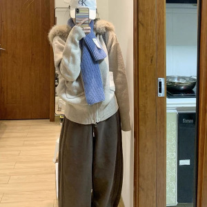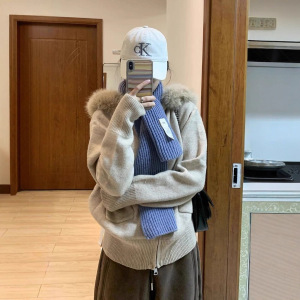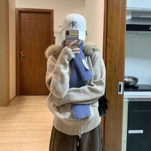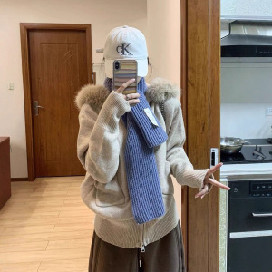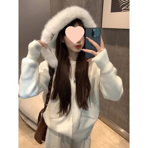 连帽拉链毛衣外套女秋季新款感慵懒宽松韩系针织开衫女装