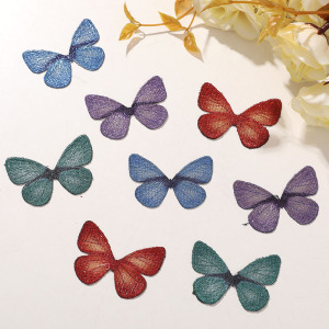 复古古风金线印染刺绣蝴蝶布贴diy发饰头饰胸针服饰窗帘装饰辅料