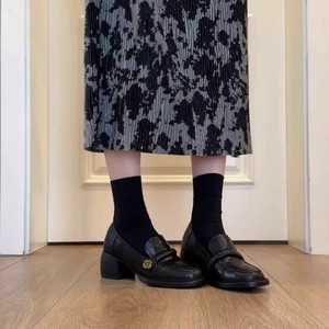 羊皮版~学院风真皮圆头粗跟乐福鞋女2025新款百搭一脚蹬懒人单鞋