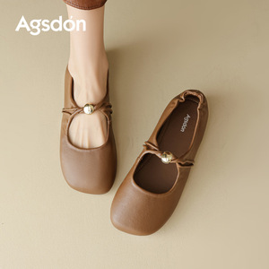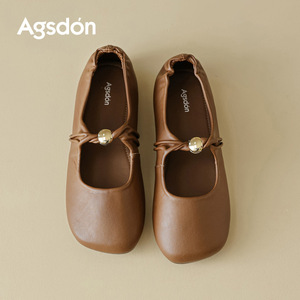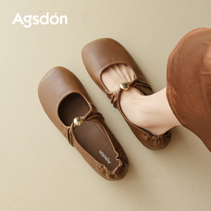 奥古狮登玛丽珍女鞋2025新款秋季复古平底巨好看小皮鞋一脚蹬单鞋