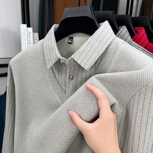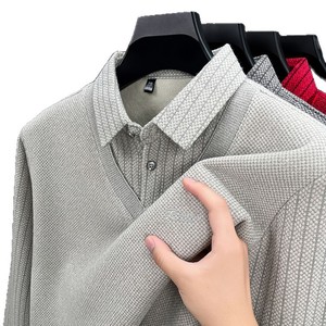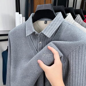 跨境秋冬季爆款加绒保暖亲肤低奢男士商务休闲翻领长袖青年POLO衫