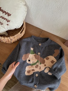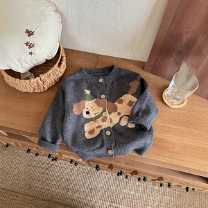 童毛衣2025年秋冬新款跨境外贸童装小狗提花针织开衫圆领上衣洋气