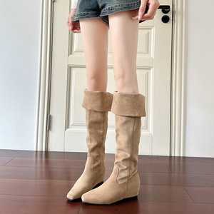 内增高过膝长筒靴女两穿靴子秋冬方头高筒堆堆长靴大筒围骑士靴女