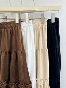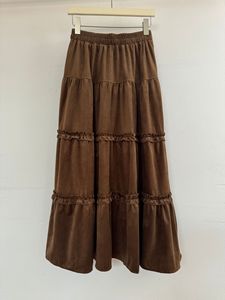 秋冬季韩版设计感花边拼接丝绒半身裙百搭通勤高腰显瘦中长款裙子