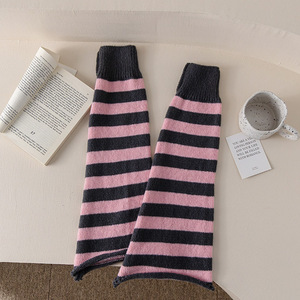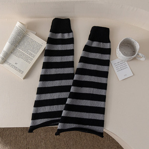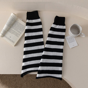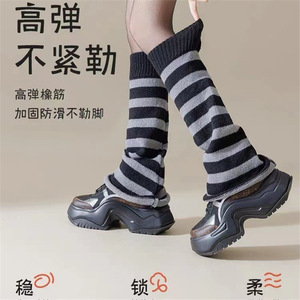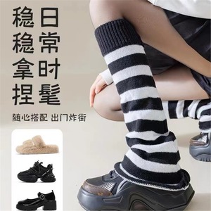 秋冬款女复古美式辣妹风黑白条纹保暖宽松袜套原宿jk腿套舒适百搭