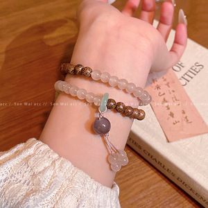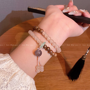 新中式木纹撞色串珠手链高级感时尚复古双层气质手串独特百搭手饰