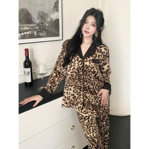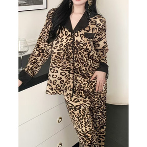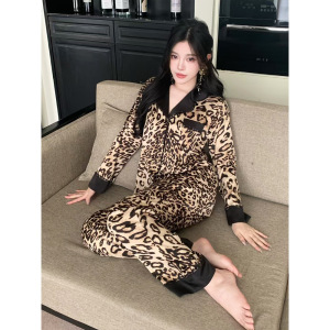 时尚奢华豹纹睡衣女秋季2025高级感长袖长裤冰丝睡衣家居服两件套