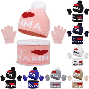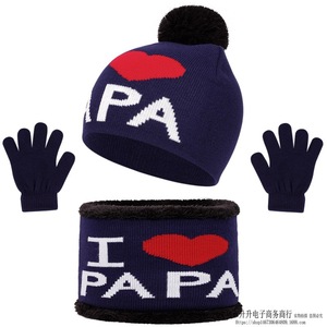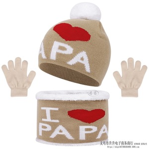亚马逊teum儿童帽子围脖手套三件套秋冬新款宝宝时尚帽子
