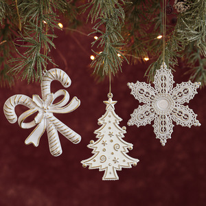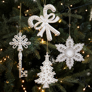 新款塑料白金色异性挂件哑光复古轻奢雪花礼仗圣诞树橱窗挂饰装饰