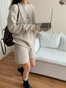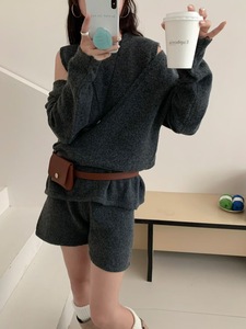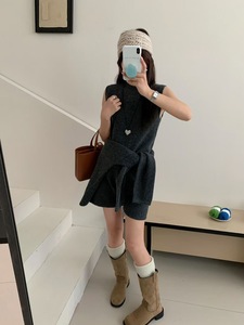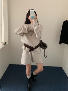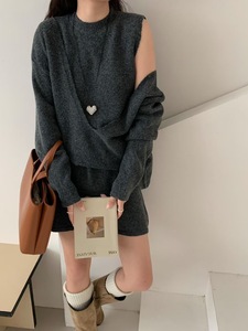 慵懒风高级感针织套装女秋冬新款韩系复古宽松背心上衣短裤三件套