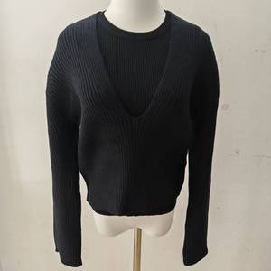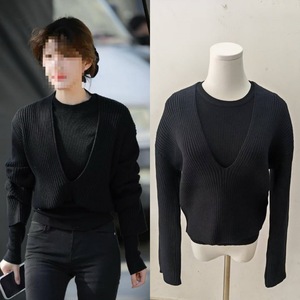 长期现货2025秋冬恋人赵露思阮妤同款黑色v领坑条针织毛衣韩上衣