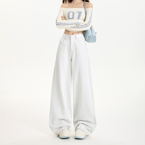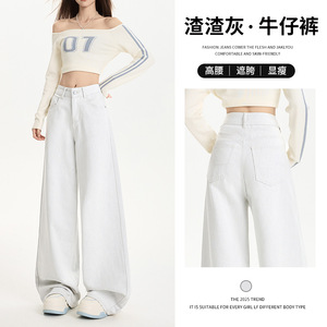 渣渣灰宽松阔腿裤浅灰色显瘦大长腿直筒时尚百搭简约秋款